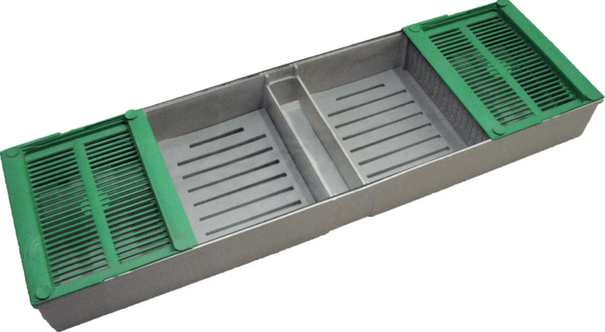В кормовом отделе устанавливается разделяющая перегородка, которая не доходит до дна примерно 3 миллиметра. В третьем отсеке перегородка не достает до верха 8 миллиметров. Снизу нет дна, что создает зазор для доступа пчел к отсеку с кормом.