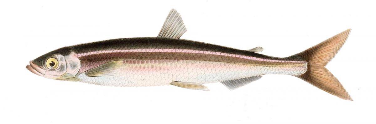 - Малоротаякорюшка – этот вид отличается небольшими размерами. Длина туловища такой мойвы не превышает 9 см, а масса тела – 30 г. Характерной особенностью рыбки считается небольшой рот. К другим особенностям относят нижнюю челюсть, выдвинутую вперед, и короткий плавник на спине. Еще одной чертой считается боковая линия, которая включает 9-13 чешуек.