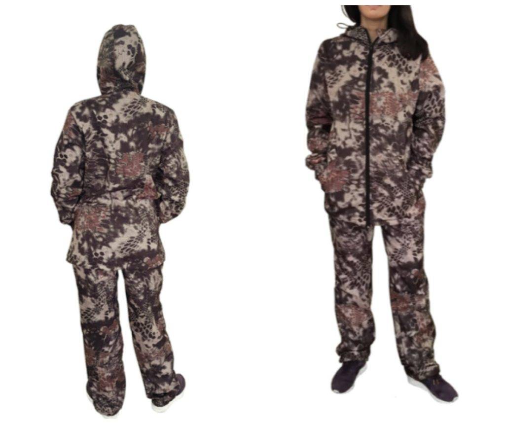 Камуфляжная одежда комфортна и практична. Известные дизайнеры используют разнообразные модели и цветовые вариации для создания неповторимых образов в стиле Милитари, благодаря чему, такую одежду можно использовать не только как рабочий костюм — в ней, к примеру, можно сходить в магазин, отправиться на прогулку, заниматься спортом, туризмом или путешествовать. Выполнена она из качественного материала, с учетом особенностей использования. От мужских вариантов отличается элегантным женским кроем. Изготовлена из Полофлис (100% полиэфир), ВО пропитка.