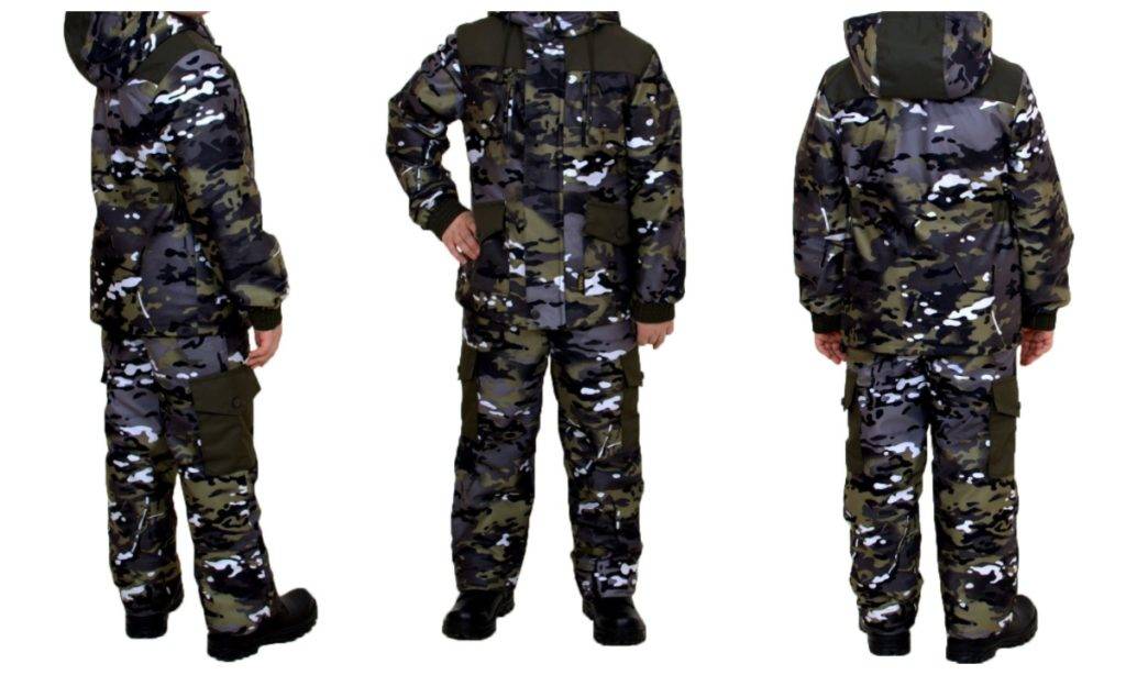 Детский утепленный костюм состоит из куртки и брюк — точная копия взрослых аналогов. Дети применяют вещи военного дизайна для состязаний, турпоходов, тихой охоты за грибами и других способов активного времяпрепровождения, сценической деятельности.
