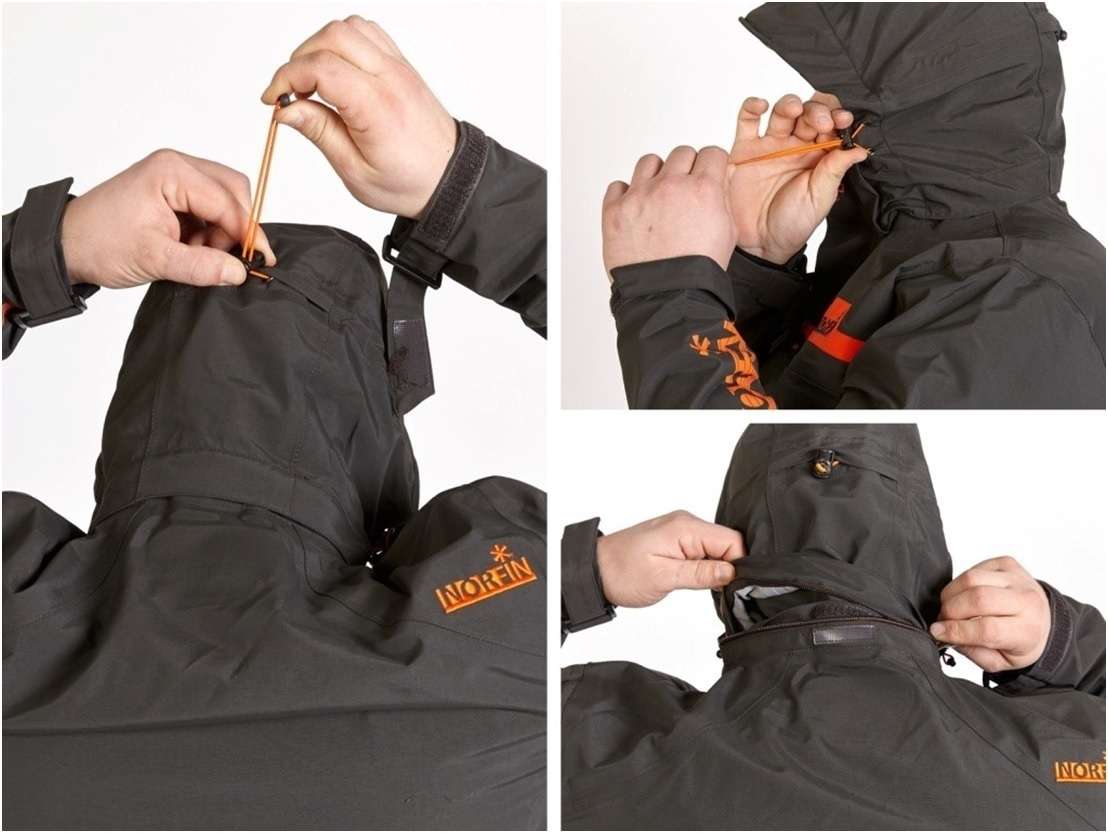 Бестселлером среди костюмов norfin для зимы считается Norfin Tornado. Это уникальный зимний костюм, который предназначен для эксплуатации в условиях холодной зимы, в период активного движения. Костюм можно использовать до -30, так как в качестве утеплителя используется тинсулейт. Это искусственный наполнитель, внутри которого имеется воздушное пространство, обеспечивающее хорошую теплоизоляцию. Куртка и комбинезон изготовлены из качественной мембранной ткани, которая покрыта прорезиненным слоем. Одежда защищает рыбака и охотника от проникновения влаги, промокания в условиях сильных ливней. Одежда отличается высокой водонепроницаемостью, которая равна 10 000 мм. Кроме того, комплект одежды позволяет телу дышать во время активного движения из-за высокого показателя паропроницаемости. Качественный пошив, проклеенные швы, а также наличие большого количества дополнительных карманов, облегчают жизнь рыбака или охотника. В костюме есть нагрудные флисовые карманы для согрева рук. Есть водонепроницаемый карман для хранения смартфона с прозрачной поверхностью. Это позволяет пользоваться телефоном, не вынимая его из кармана. Великолепный выбор для активных людей, которые не сидят на месте и предпочитают активную зимнюю рыбалку, охоту в тяжёлых погодных условиях.
