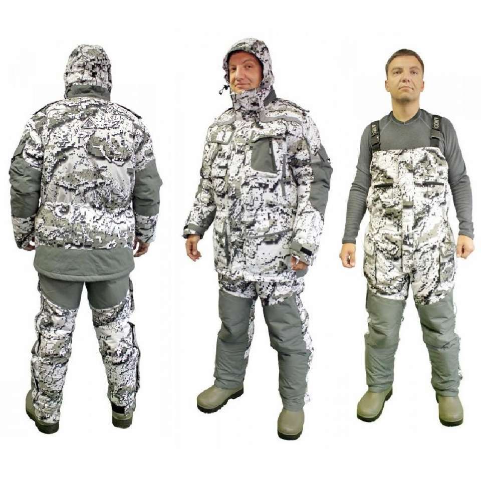 Популярный мембранный рыбацкий костюм, в комплект входит флисовая кофта, полукомбинезон и основная куртка. Для изготовления Huntsman Siberia применяют новейшую технологию утеплителя из мембран, который позволяет модели сохранять тепло даже при температуре -40 °С. Имеются влагозащитные молнии, одежду можно подогнать по размеру благодаря регуляторам на лямках полкомбинезона, рукавах, брюк. Стоимость модели – около 10000 рублей.