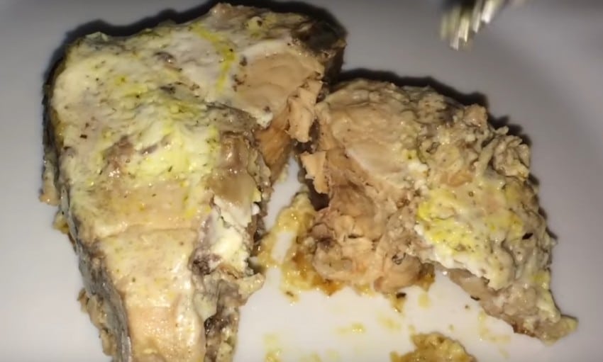 Блюдо является диетическим, поэтому его можно есть даже детям. Рыба сохраняет большое количество полезных микроэлементов.