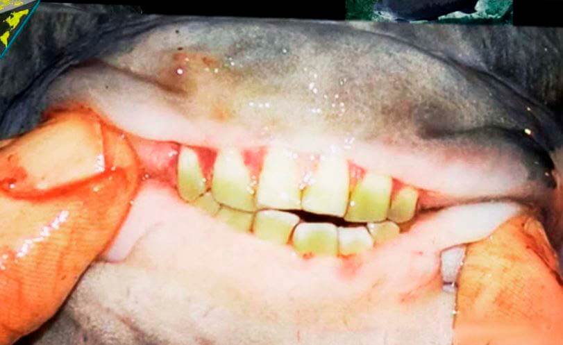 - Зубы хищной пираньи внешне напоминают острия пики. Особенность прикуса внешне выражается в характерно выступающей вперед нижней челюсти.