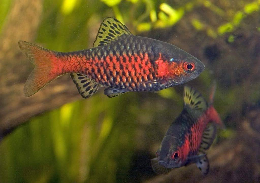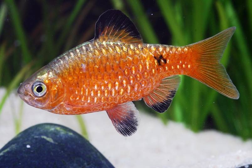 Пожалуй, один из самых эффектных видов барбусов – за это и считается одной из самых популярных в своем роде. Содержать их необходимо в стае, что делает рыбок еще более эффектными. Размер в аквариуме – до 4-5 сантиметров.