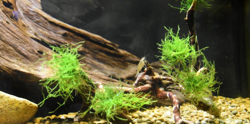 - Декорации. В их качестве обычно берут корягу, обросшую мхом. Древесиной питаются только вылупленные креветки, а мох становится им укрытием.