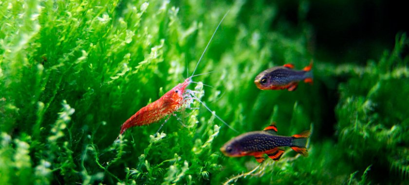 Вишнёвая представительница ракообразных может жить в одной ёмкости с рыбками: