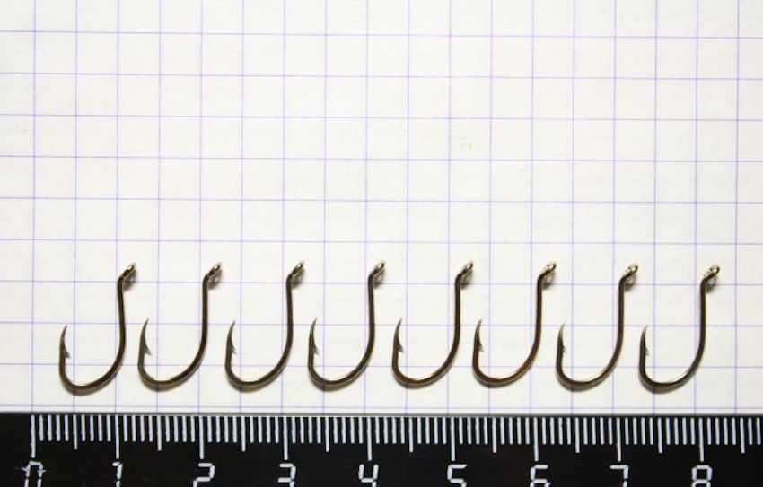 Обратите внимание: встречаются модели без колечек и лопаточек. На верхней части цевья делается несколько мелких насечек. Такой крючок можно привязать к тончайшим лескам диаметром до 0,1 мм