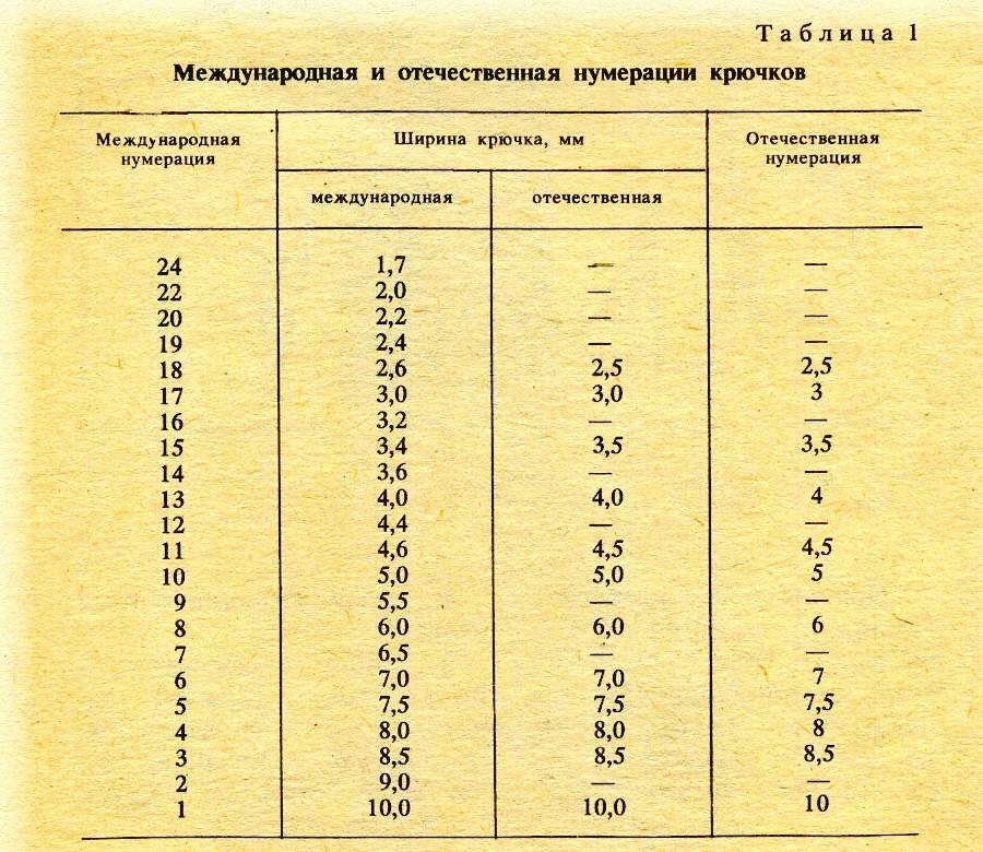 Таблица размеров крючков по различным классификациям