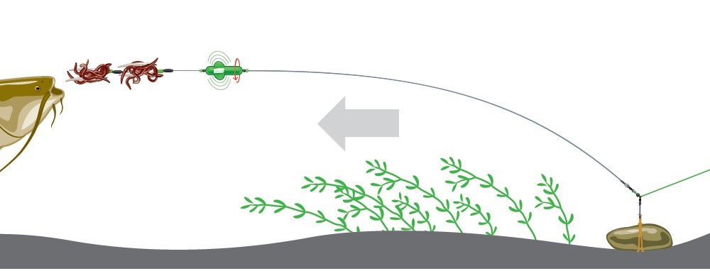 Приманки для сома для текущей ловли должны быть достаточно тяжелыми. Конечно, большая часть сома ловится в тихих местах, но их также можно найти в реках с быстрым течением, поэтому хорошая снасть с грузилами необходима.
