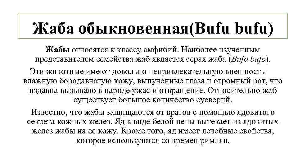 Жаба обыкновенная(Bufu bufu) Жабы относятся к классу амфибий.