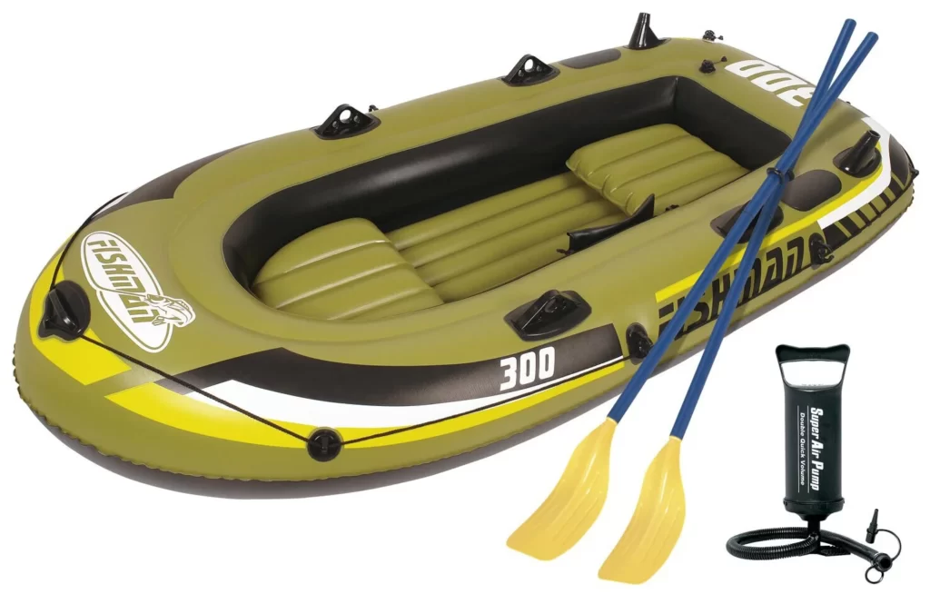 Это правильный выбор для тех, кто хочет использовать надувную лодку для рыбалки, потому что она весит 9,36 кг и с ней легко обращаться. Она оснащена специальным клапаном, который обеспечивает надувание и сдувание не более чем за 10 минут, а в комплект поставки входит ручной насос.