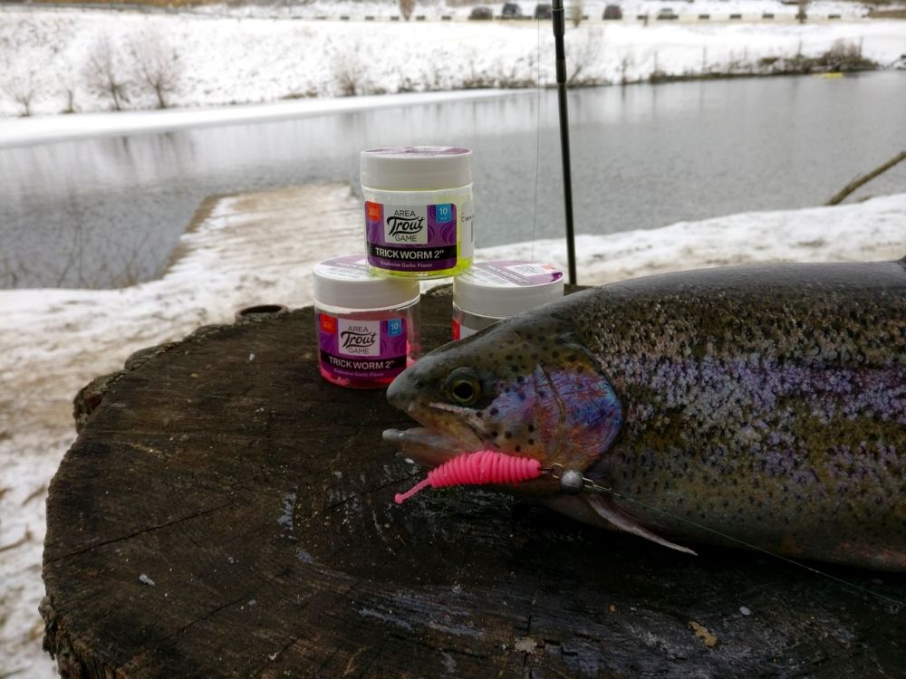 Бывают дни, когда на блесну форель вообще не реагирует, тогда приходится прибегать к менее активному «силикону». Ловить на него менее интересно, здесь нет такого разнообразия в проводках. Вся ловля строится на длительной паузе и коротких рывках. Из того разнообразия форелевых приманок, что есть сейчас на рыболовном рынке, мне больше всего нравится ловить на «червей» от фирмы LureMax под романтическим названием Esmeralda и аналогичную приманку от Lucky John из специализированной серии Trick Worm 2.