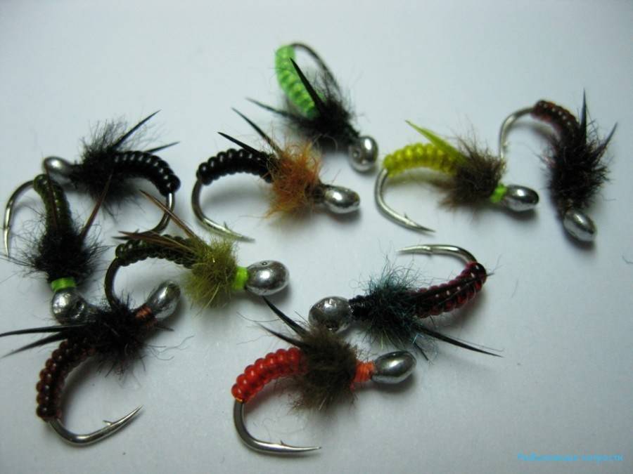 Мушки, используемые для зимней ловли хариуса, почти не отличаются от летних обманок. Опытные рыболовы стараются использовать крючки небольшого размера №3,5. Главная особенность зимних мушек – слабое опушение, так как в это время нужно сымитировать личинок рачков-бокоплавов и насекомых.