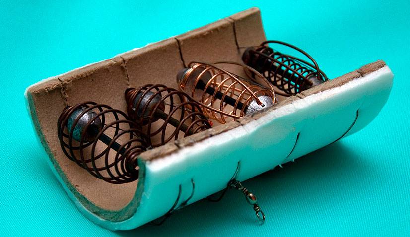 Простейшим вариантом кормушки этого типа является «пустышка» – пружина, не имеющая внутреннего стержня и состоящая исключительно из мотков проволоки. Такая пружина применяется для ловли рыб различных видов, но чаще всего ее включают в монтаж «убийца карася». Делать пустышку своими руками проще всего: