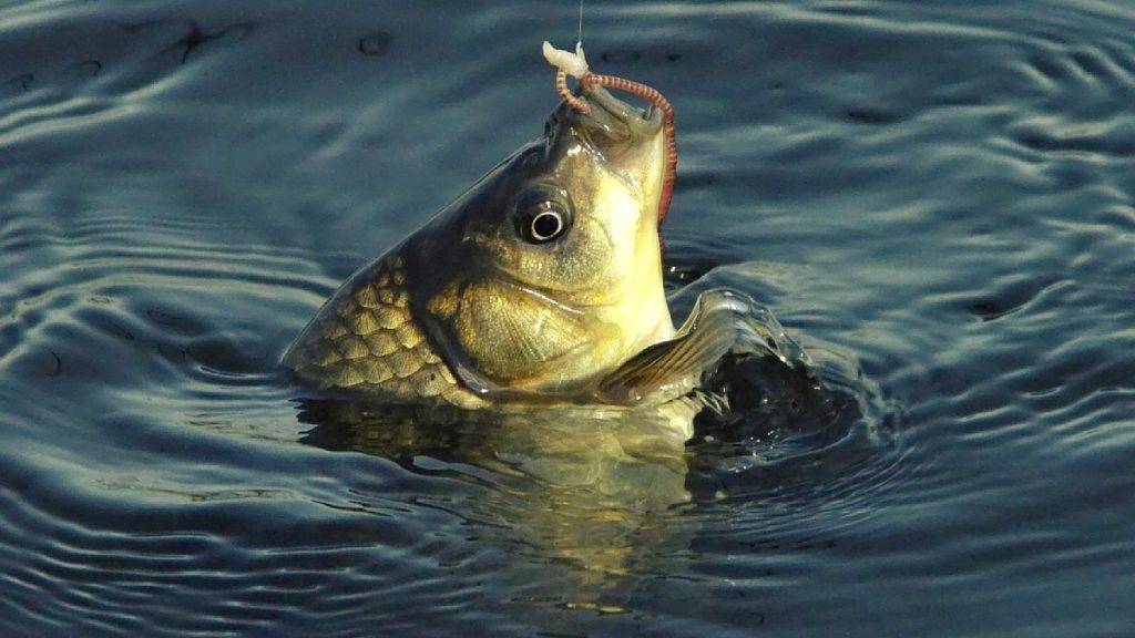 Осенью. Время близится к холодам и карась старается нагулять жирок, поэтому больше предпочитает белковую пищу — червей, опарышей.