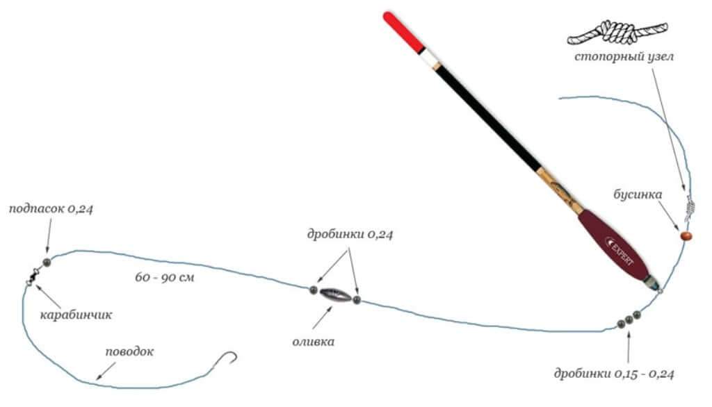 Если ловить приходится в плохую погоду или при течении, то нужно добавить дробинок, чтобы поплавок не качало.