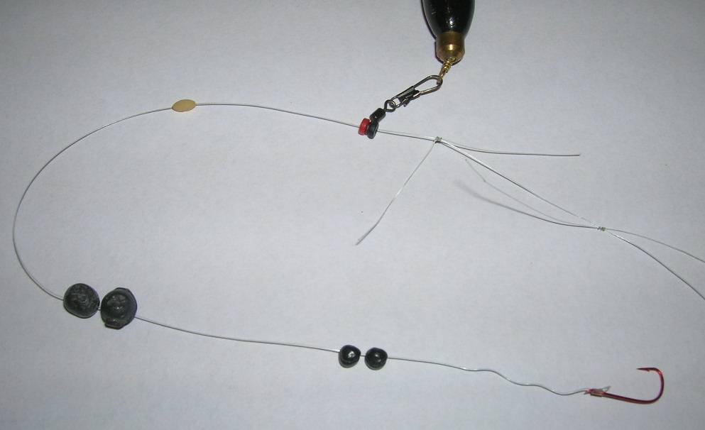Такая оснастка позволяет легко заменить грузило, когда это необходимо. При ловле на значительном течении, для надёжной фиксации приманки в одном месте, следует применять тяжёлое свинцовое грузило плоской формы.