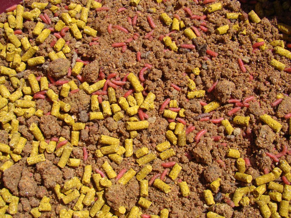 Основа прикормки для карпа – покупная ароматизированная смесь. Следует стараться брать покупные прикормки, которые имеют сладкий ароматный запах. Прикормки понадобится много, карп очень прожорлив и перекормить его, особенно в водоемах, где его много (на платниках) просто невозможно. Следует рассчитывать на общую массу прикормки как минимум в 5 кг. Кроме готовой смеси, используются крупные фракции, подготавливаемые дома (сладкая кукуруза, опарыши, пеллетсы, макуха, др.)