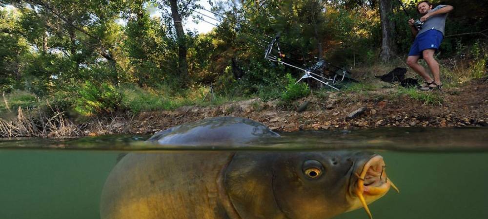 - Использование удочки поможет поймать карпа в жаркий летний день, когда он прячется от жары в глубине или в определённые моменты подплывает к поверхности для того, чтобы глотнуть воздуха.