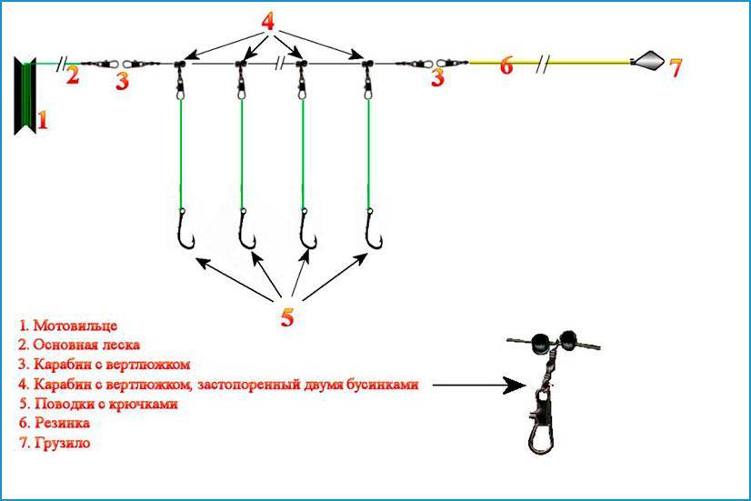 - Исходя из пункта №2, поводки к основной лесе лучше ставить через вертлюг – так их быстрее менять.