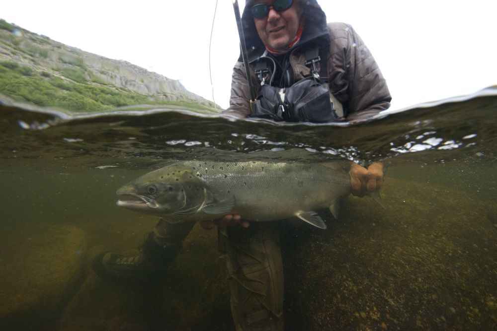 Хочется сказать пару слов о вываживании сёмги. В этом вопросе большинство новичков совершают много ошибок. Дело в том, что сёмга должна утомить себя сама, так что необходимо позволить ей сделать это. Никогда не стоит форсировать события. Ваша задача – контролировать процесс и сохранять монотонную нагрузку на снасть, что бы ни вытворяла рыба. Два главных условия: удилище – всегда вверх перпендикулярно поверхности воды и выдерживать одинаковая нагрузка на снасть.