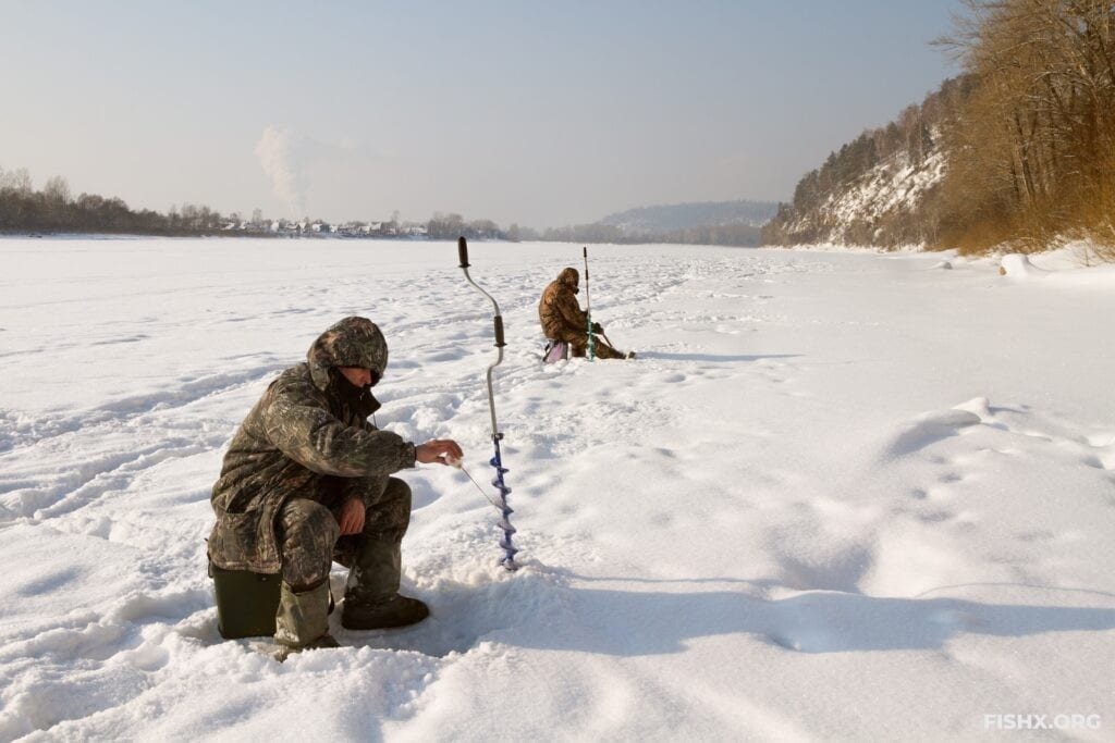 - лунка, просверленная под наклоном в сторону течения, облегчит ловлю,