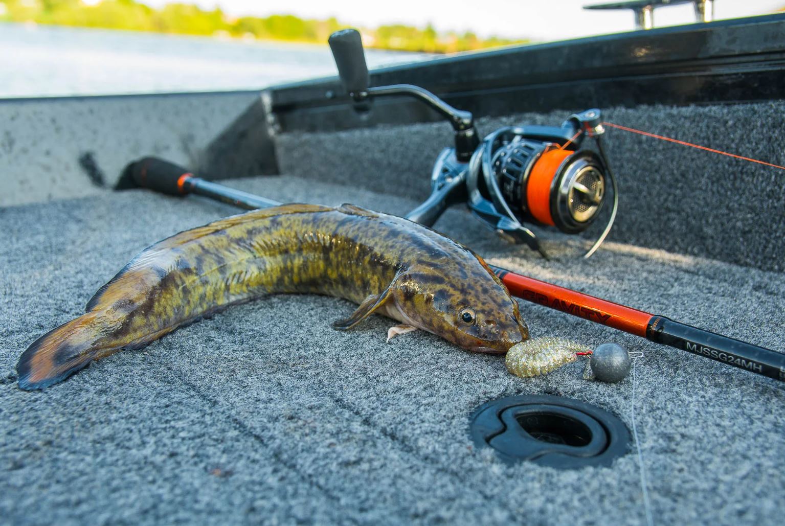 Не самая лучшая снасть для ловли налима, потому что рыба больше реагирует не на движения приманки, а на запах. К тому же основные места обитания трудно облавливать с помощью спиннинга из-за возможных зацепов. Налим скорее попадается параллельно с ловлей другой хищной рыбы.
