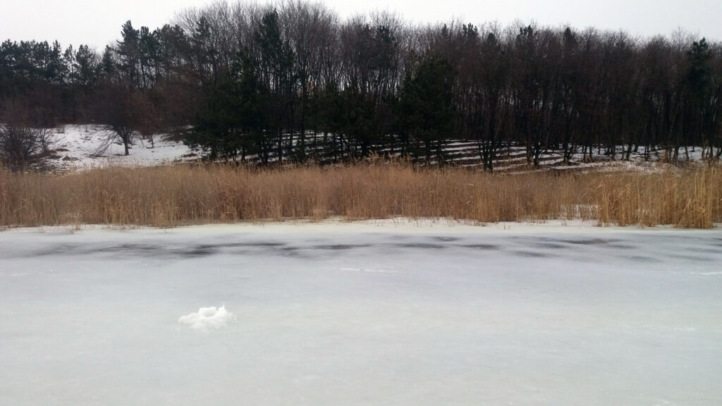 Лёд уже начал таять, он стал пористым и рыхлым. Под берегом появились проталины, может последняя мормышинговая рыбалка в сезоне. Бурю первые лунки, достаю балалайку с вольфрамовой мормышкой диаметром 3 мм в цвете «серебро».