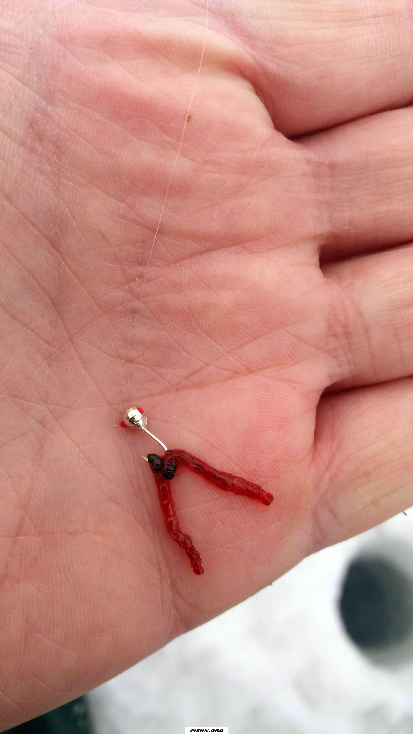 Мотыль – самая распространенная наживка при ловле зимой любой рыбы, в том числе и окуня. Насаживают его на крючок разными способами: за кончик, поперек, пучком. Крючки должны быть острыми, в противном случае мотыль просто испортится.