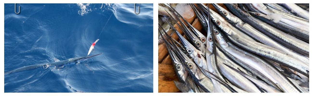 Несколько необычным является зеленый цвет костей. Используется европейский сарган и для наживки.