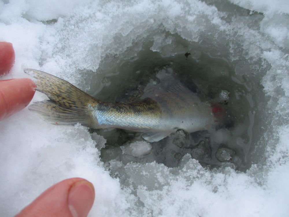 Понятно, что вытянуть на лед крупную рыбу – заветная мечта любого рыболова. Но, как показала моя практика ловли судака на жерлицы, тут есть место и холостым сработкам, и досадным сходам, и постоянный интерес к выставленному живцу со стороны клыкастой мелочи. А поскольку молодежь имеет тенденцию к сплачиванию в стаи, особенно в начале своего жизненного пути, то если вы неудачно «угадали» с точкой установки жерлицы, веселая жизнь будет вам гарантирована, ведь мелкие клыкастики не оставят в покое вашего живца. И будут даже не столько попадаться на крючок, сколько заставлять реагировать на вхолостую взлетающие флажки. Лично я, если понимаю, что оказался на периметре нахождения стаи мелкого судака, обычно меняю точки установки жерлиц, попутно выпуская попавшихся клыкастиков (фото 14).