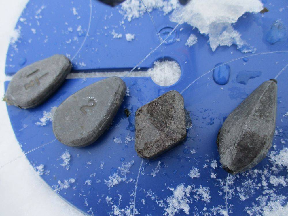 Основная леска у меня на судачьих жерлицах стоит сечением 0,4 мм. На ней располагается скользящее грузило. Надо иметь в виду, что на речной рыбалке грузило-оливка не подойдет, поскольку на жерличную оснастку воздействует течение, и обычно – достаточно сильное, оно обязательно попытается снести её с нужной точки. Я заготавливаю группу судачьих жерлиц, оснащая их плоскими или гранеными грузилами разной массы (фото 3).