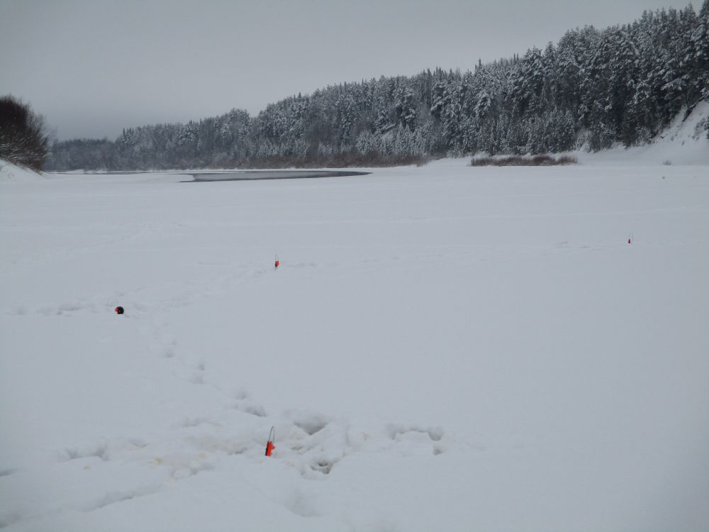 Там я и планировал поставить свои жерлицы. Ну, то есть, я прикинул, что судак может тут, к примеру, на участке реки, обитать, но его никто зимой целенаправленно жерлицей не ловил. А когда я в первый раз расставил жерлицы на течении (фото 7), то среди находившихся тут же блеснильщиков только ленивый не подошел и не посоветовал мне перенести мои снасти ближе к берегу, ведь именно там логичней ловить… щуку.