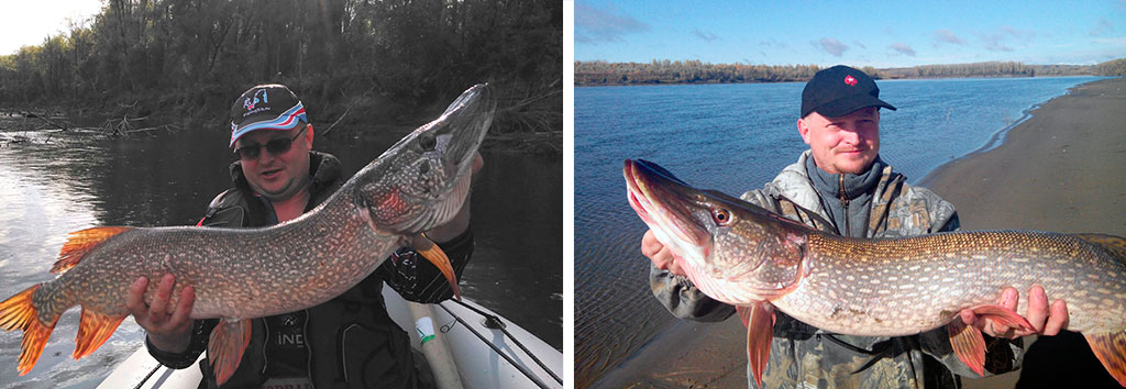 Антон: «Ловля трофейной щуки начинается летом, с середины июля, иногда и с начала, зависит от уровня воды. Обычно первые мамки попадаются, когда вода упала так, что залитые береговые кусты обнажились. Это уровень ниже двух метров по-новосибирскому гидропосту. Это я говорю про акваторию от Новосибирска и до, скажем протоки Симан. После впадения Томи условия уже другие, но и трофейной щуки там, в десятки раз больше. Я бы не сказал, что чем ближе к осени, тем больше шанс поймать крокодила, конец июля – август зачастую бывают не менее урожайными по «задесяткам».