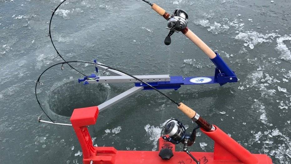 Жерлица складывается и транспортируется без особых проблем. Также в основании есть отверстия, предназначенные для размещения удилищ при переноске. Механизм покрыт веществом, которое предохраняет от обледенения.