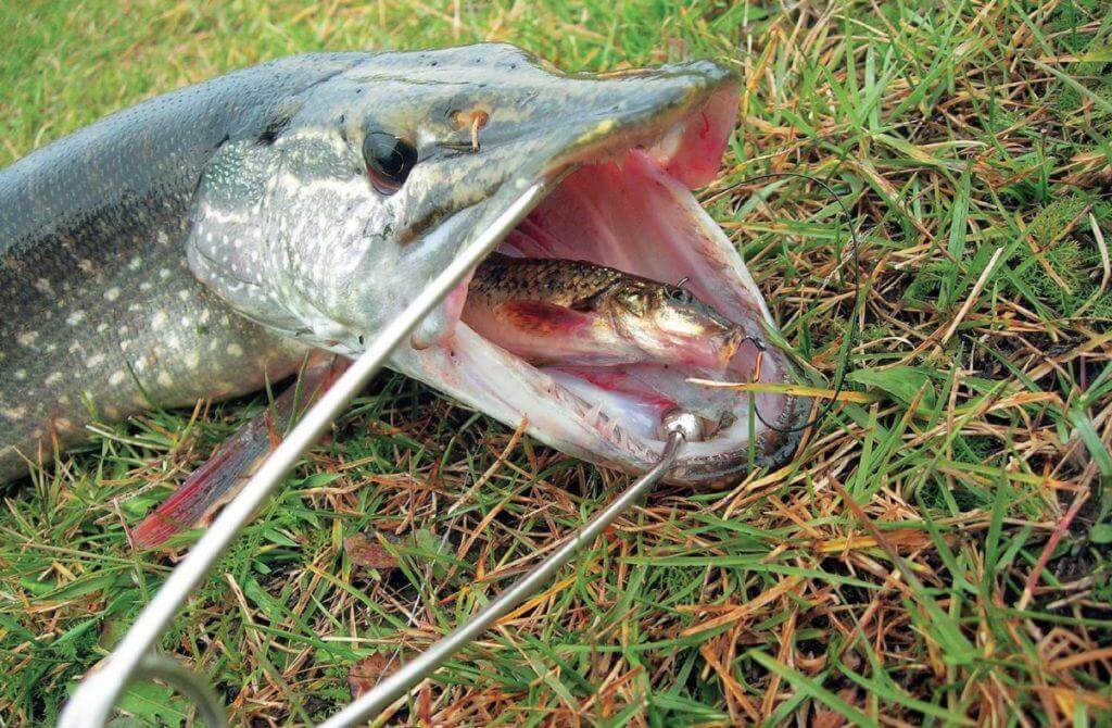 Щука заглатывает живца, а рыболову нужно дождаться, когда зубастая двинется в укрытие. Допускается отсутствия поводка при умелом вываживании хищника.
