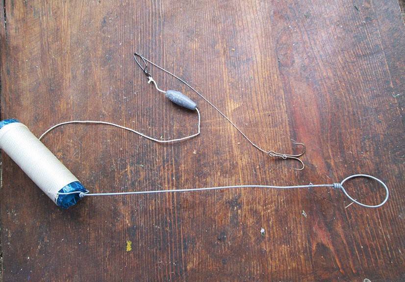 Живцовые снасти на щуку представляют собой зачастую донную снасть с отрезком лески толщиной 0,4-0,6 мм и длиной от 10 до 40 м, который наматывается на обычную катушку или мотовильце. Небольшое грузило не дает живцу уходить с места ловли, а наживляется рыбка на крупный одинарный крючок или на небольшие двойники и тройники.