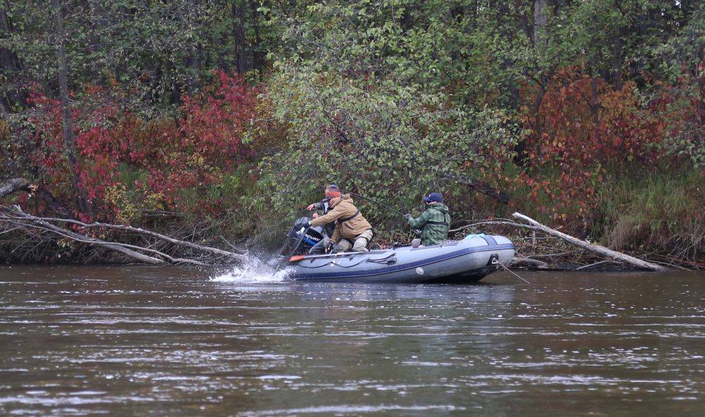 Часто при заброске лодкой можно по берегам встретить диких животных. Это очень красивое зрелище, и лично для меня – необходимое дополнение таких поездок. Глядя на дикий мир, ощущаешь, что здесь другие законы и правила. Перемещение на лодках дешевле, но медленнее, чем заброска по воздуху, зато можно оперативнее принять решение, где разбить лагерь или задержаться на несколько бросков спиннингом на каком-то участке и т.д.