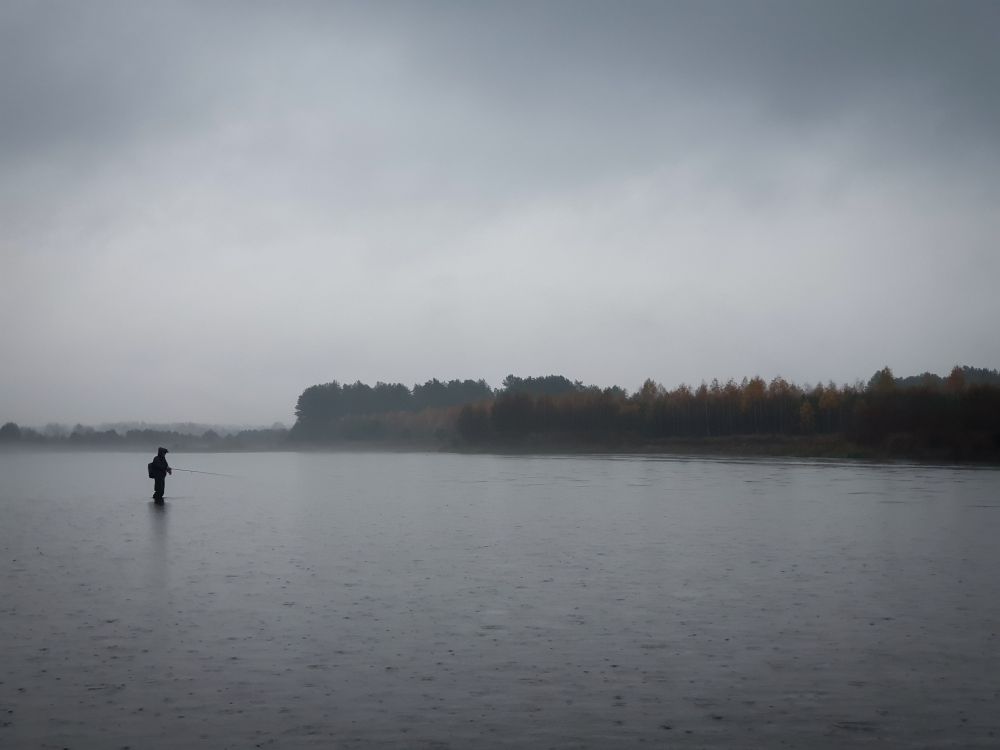 Поймать он при определенной удаче может и поймает, но КПД, а главное – шансы на трофей были бы гораздо выше, если б он вёл себя тихо, осторожно, спустился к самому урезу воды, присел на корточки, а забросы делал периодически, с паузами, а не хлестал воду беспрерывно