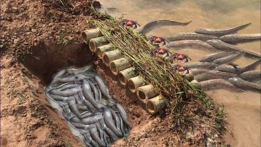 Любопытные особи попадают в бамбук и двигаются вперед по трубке, которая приводит их в ловушку. Из выкопанного углубления рыба без трудности достается рыбаками.