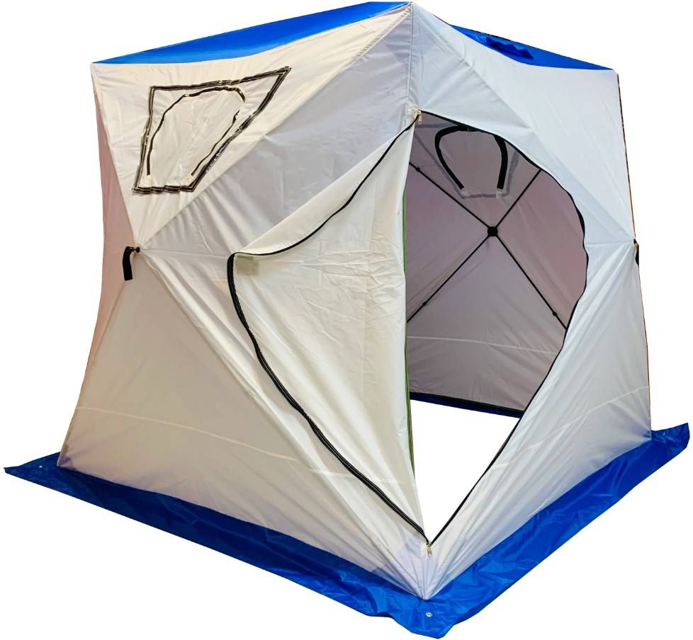 Высота укрытия составляет 215 см, что позволяет рыболову стоять внутри во весь рост. Оснащается быстросборным каркасом (относится к категории автопалаток). Это изделие без особого труда может быстро установить даже один человек. Дополнительно оснащена специальным креплением для установки фонаря. Стоит отметить, что это укрытие может применяться в качестве мобильной походной бани. Дополнительно оснащается снегозащитной юбкой. Каркас сделан из фиберглассовых дуг и металлических хабов. Автопалатка однослойная, материал ткани – Оксфорд 210d PU.