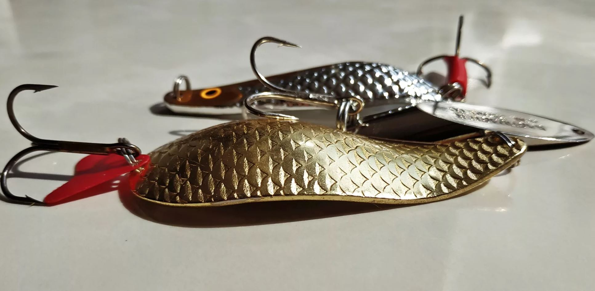 - Как минимум, белый серебро и желтый (латунь, золото). Пригодятся и красные, под медь, колебалки. Каждая из них нужна как в ярком бликующем варианте, так и в матовом.