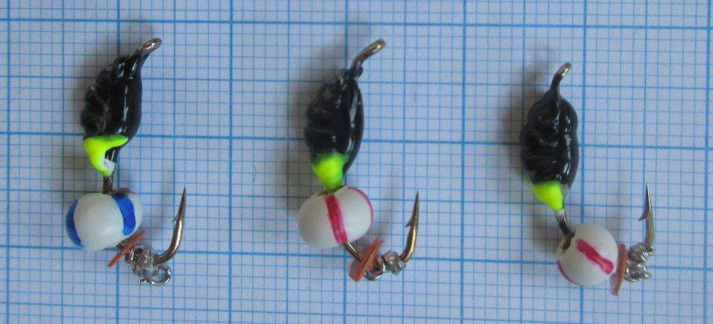 Сама оснастка бывает совершенно различной. Самый простой вариант – одна мормышка на конце лески. Но более уловистый вариант – размещение еще одного крючка или легкой мормышки выше по лесе на отводном поводке. На этот крючок также насаживается наживка. Зачастую, особенно в глухозимье, когда хищник предпочитает мелкие приманки, поклевки происходят только на этот провокатор. С вариантами оснасток можно экспериментировать, например, ставить наверху муху или резиновую приманочку. Но все же рекомендуется, особенно в середине зимы, использовать животную наживку.