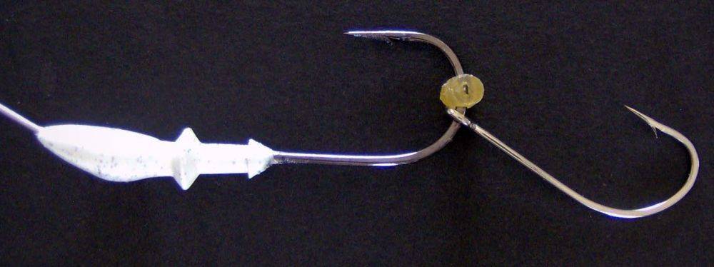 Трейлерный крючок идёт в комплекте с некоторыми спиннербейтами, но его легко сделать и самому, использовав для этого крупные одинарники с широким ушком – например, предназначенные для разборных «ушастых» грузил в джиговой ловле. Окунь тоже неравнодушен к трейлерам, но для него размер твистера нужно подбирать поменьше, т.к. размер пасти у него всё-таки не такой громадный, как у щуки.