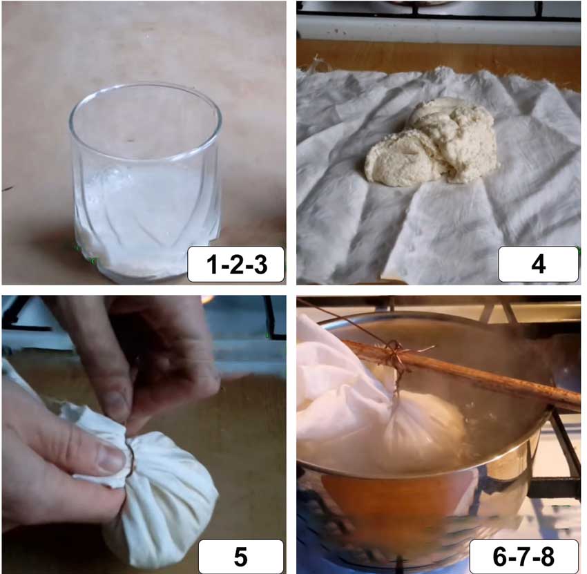 - А затем основной этап — готовим «промытое» (вымытое) тесто. Под небольшой струйкой воды из-под крана промываем наш замес.