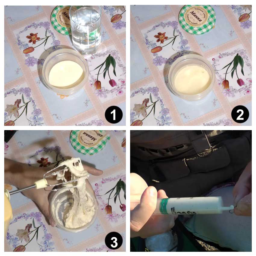 - Болтушку переложить в медицинский шприц на 20 кубов или в баночку.