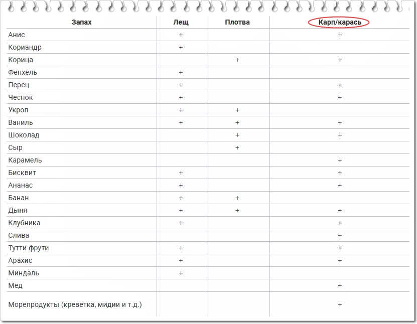 Какие запахи нравятся карпу и карасю, плотве и лещу: