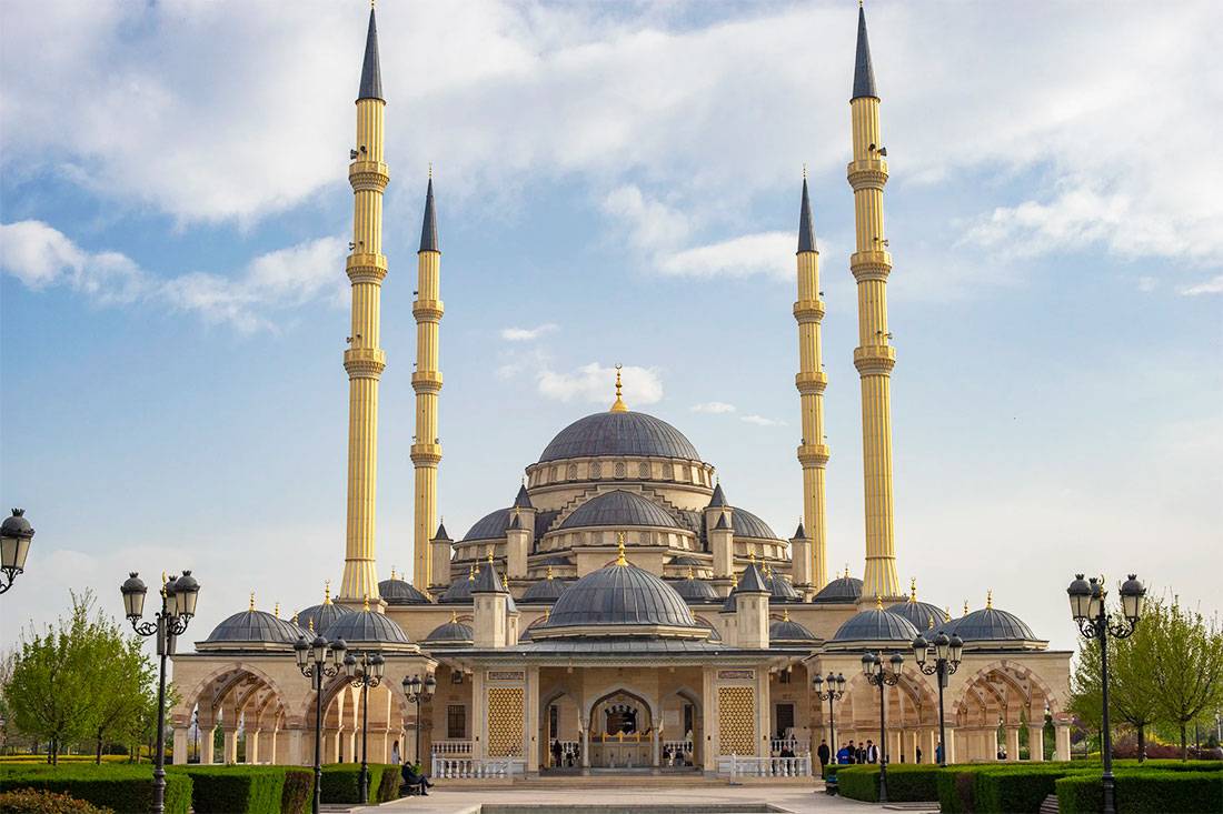 Зачем посещать. «Сердце Чечни» – не только религиозный центр, но и одна из самых известных архитектурных достопримечательностей города. Она оформлена в османском стиле и напоминает стамбульскую Голубую мечеть: стены облицованы красивым бежевым травертином, ее венчает большой купол, а минареты возвышаются более чем на 60 метров.