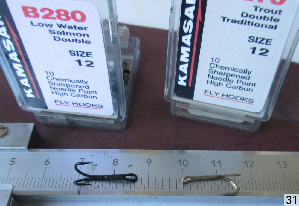 Вариант первый — это с использованием одного крючка. Как и во всех остальных приманках, я использую форелевую серию Saikyo в размерах №№ 10, 12 и 14 или Kamasan № 14. Как правило, крючки № 10 предназначены для больших глубин, поскольку мормышки с ними имеют массу более грамма и размер 16 – 17 мм (фото 39), что, по моему опыту, является близким к пределу — приманки большего размера очень часто не привлекают окуня. А вот №№ 12 и 14 являются самыми, что называется, ходовыми и востребованными. Поэтому большая часть моих паек выполнена именно на этих крючках.